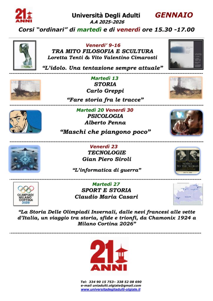L’Università degli Adulti di Olgiate Comasco è centro di aggregazione culturale e sociale per cittadini maggiorenni di ogni età che vogliano coltivare insieme con altri il piacere di apprendere.