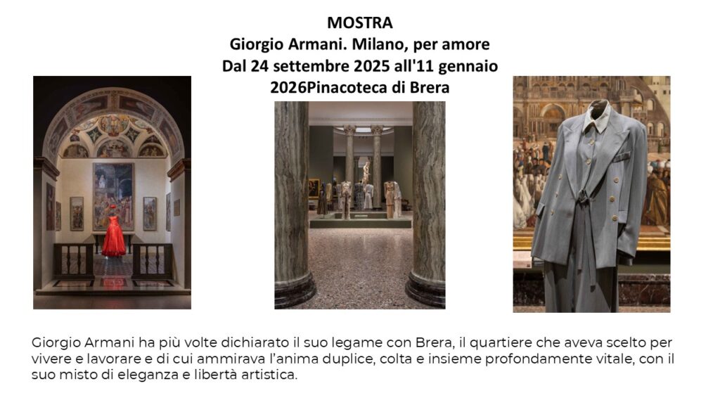 A tutti gli interessati alla Mostra ARMANI -BRERA in lista d’attesa ed eventuali altri soci che si volessero aggiungere , si comunica che il museo ci ha messo a disposizione altri 30 posti per una visita guidata il giorno giovedì 11 dicembre 2025 alle ore 13.45. La partenza del pulmino da Olgiate è pertanto prevista […]